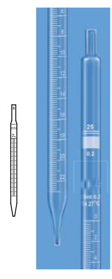 - Two rings at the top indicate that the Pipette is calibrated to deliver from any graduation line down to tip